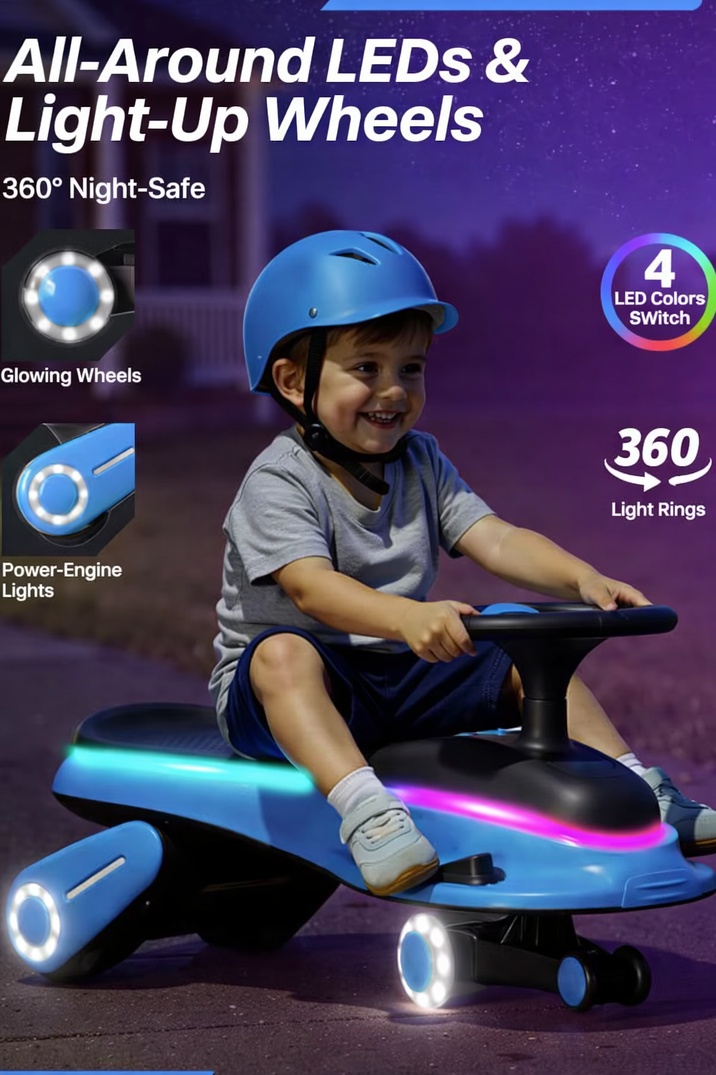 • LED ring lights & flashing wheels