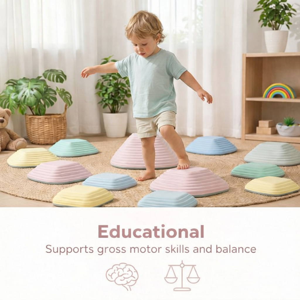 Help your child develop balance and motor skills in a fun and active way. These stepping stones are designed to improve coordination, stability, and muscle strength while children play.