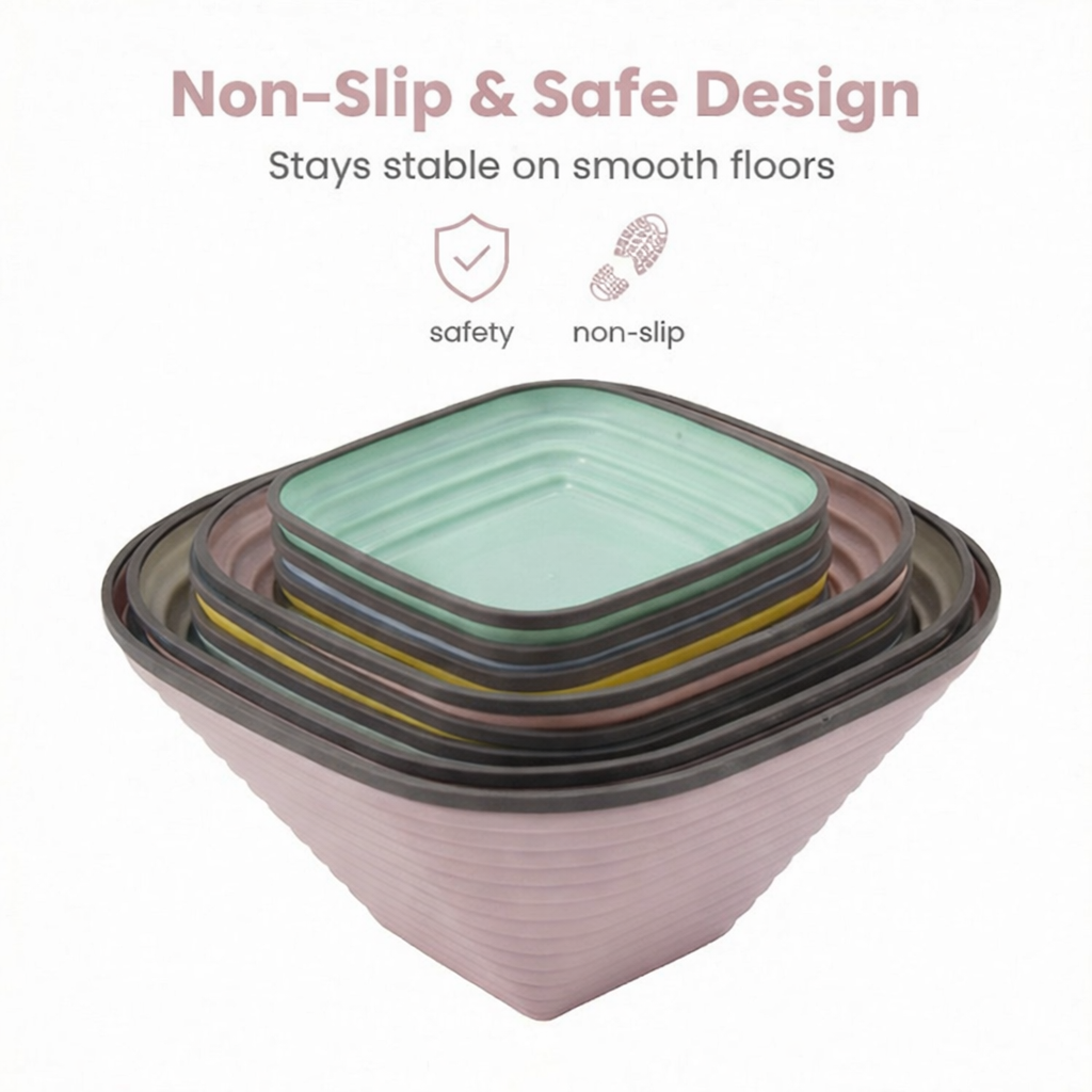 Non-slip base with rounded edges for safety
